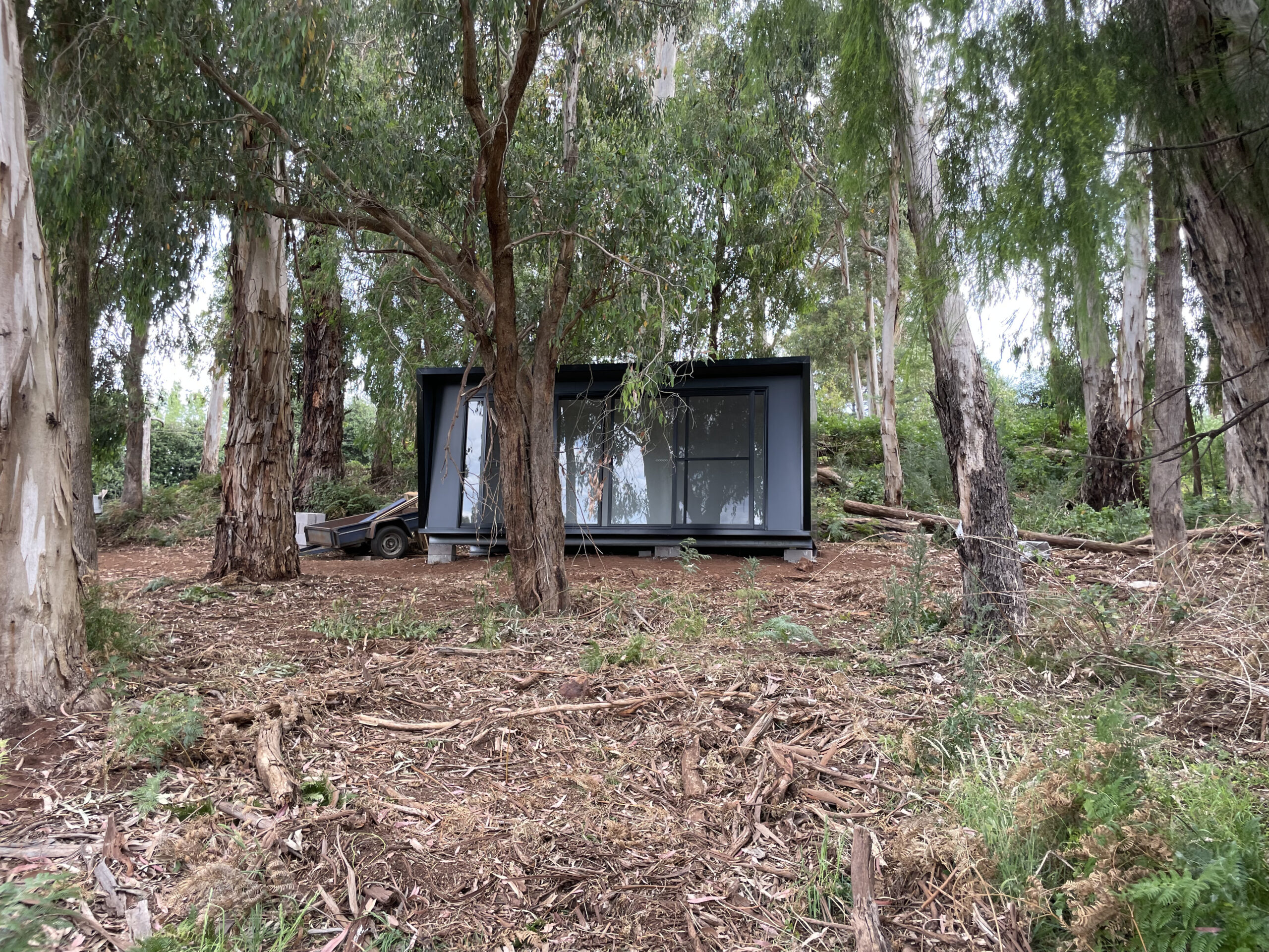 We recently completed a stunning customized 2.4mx6.0m Monument color pod in Silvan, set on our client’s beautiful farm surrounded by towering trees.