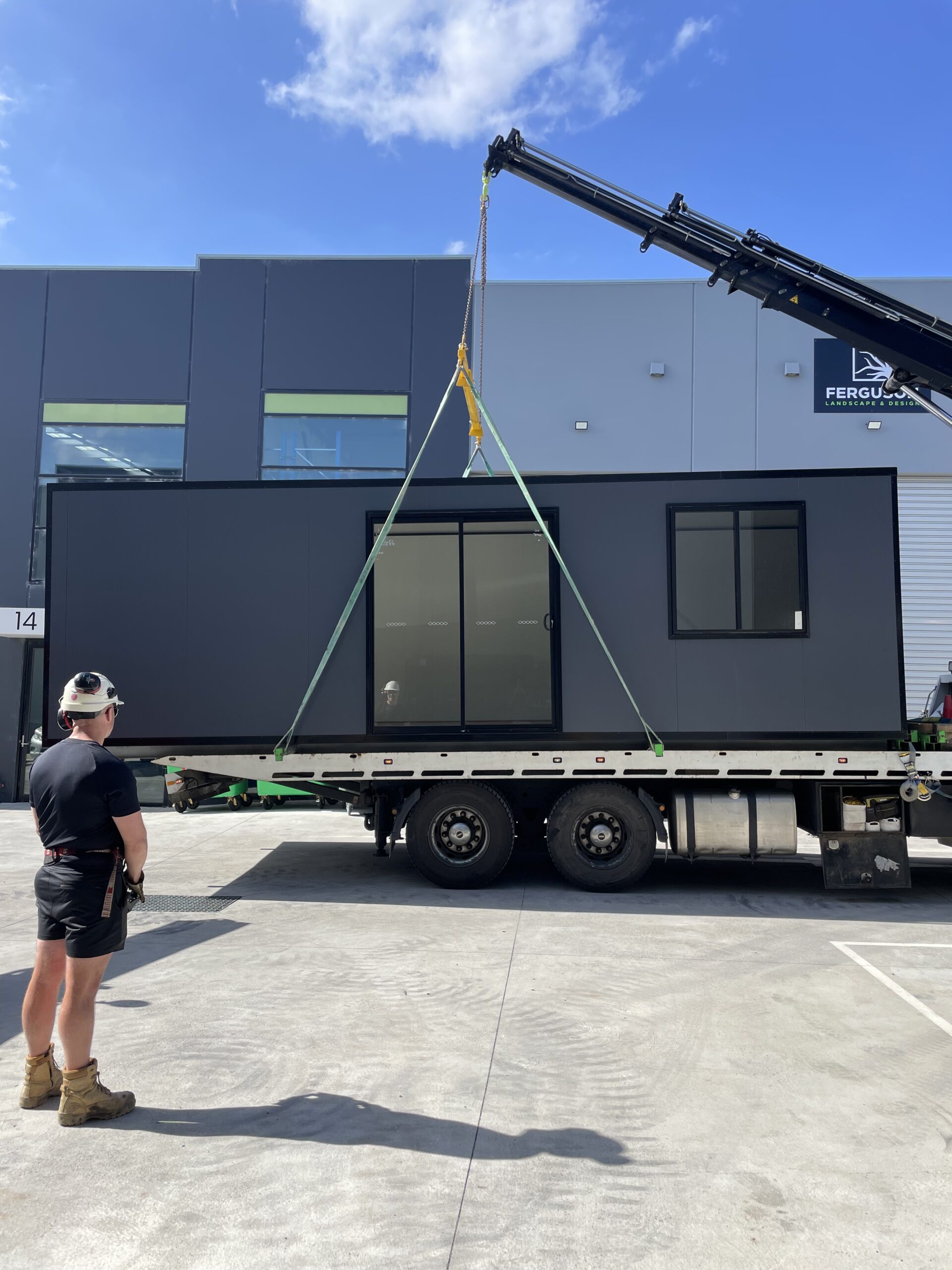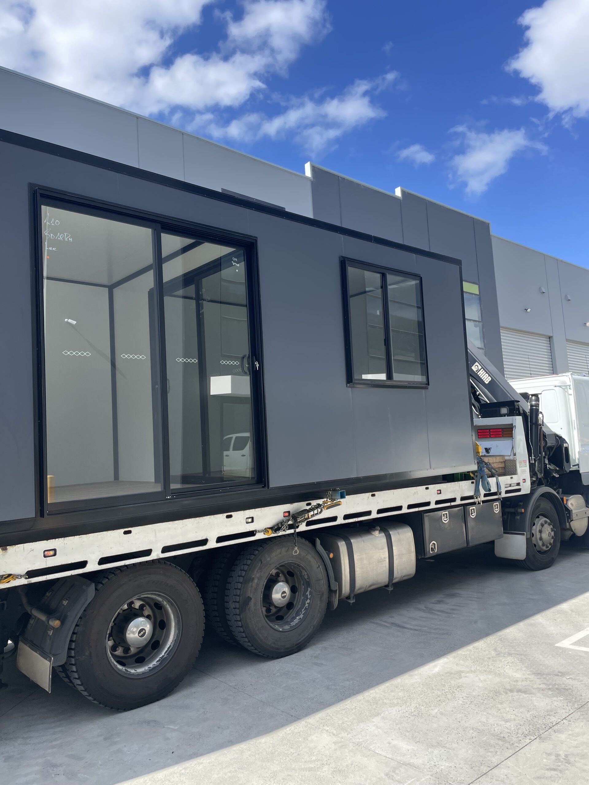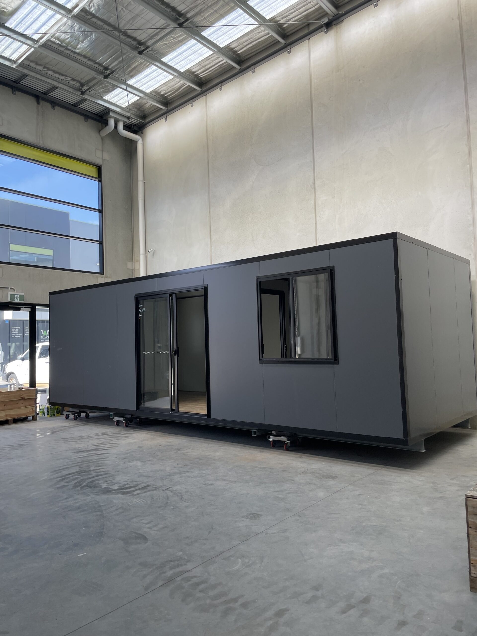 3x8m monument-colored warehouse office for K&T Construction Group Australasia Ltd. in Pakenham! They needed a practical, transportable office space to use in their warehouse—ideal for businesses looking for flexibility when moving locations. This custom unit features beautiful Spotted Gum hybrid flooring, giving it a polished, professional look. Built and delivered within a 3-week lead time, this office is a smart solution for warehouses without designated office areas. The client was thrilled with the quick turnaround and quality of our work!